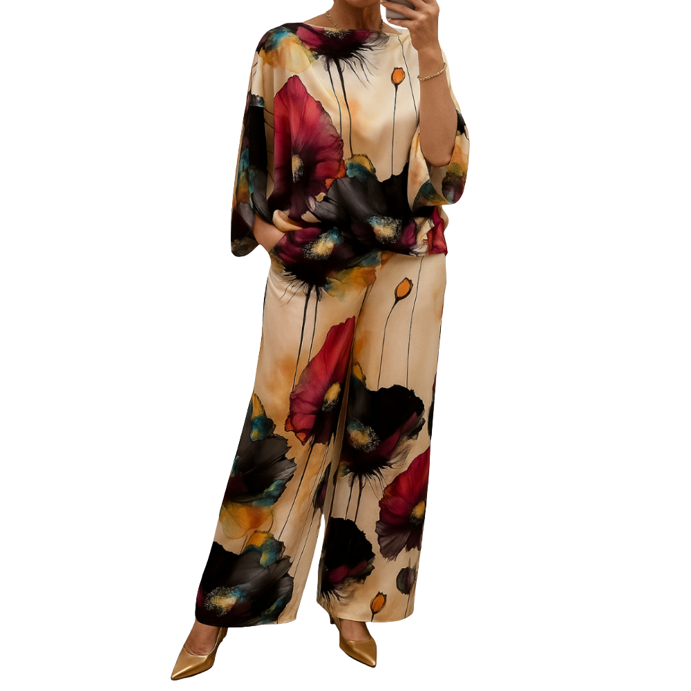 Abby-settet tilbyr en kraftig kombinasjon av eleganse og stil. Med en raffinert passform og iøynefallende farger er dette todelte antrekket designet for kvinner som tør å skille seg ut. Enten du velger en brunsj med venninner eller en elegant kveld på byen, gir Abby-settet deg et stilig og uanstrengt utseende i alle sammenhenger.